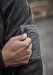 - Contrast arm pocket with zip closure.