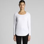 Crew neck, ¾ length raglan sleeves, curved tails